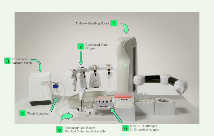 Fully Automated Solid Phase Extraction Sample Preparation using the Andrew+ Pipetting Robot configured with the Extraction+ Connected Device