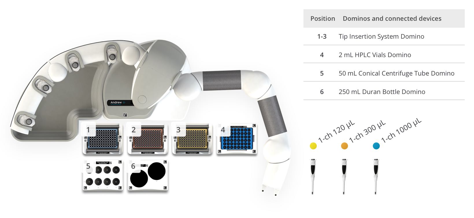 Andrew+ System Components: Dominos, Devices, Electronic Pipettes & Tips