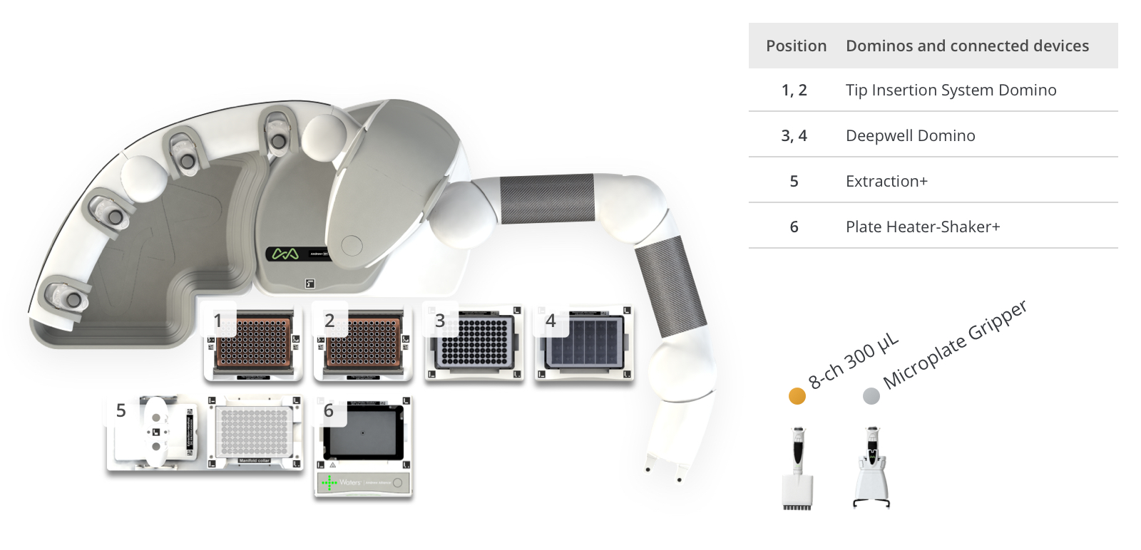 Andrew+ System Components: Dominos, Devices, Electronic Pipettes & Tips