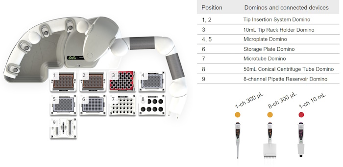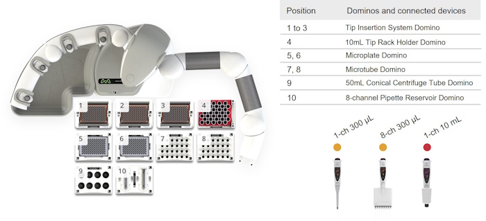 Andrew+ System Components: Dominos, Devices, Electronic Pipettes & Tips